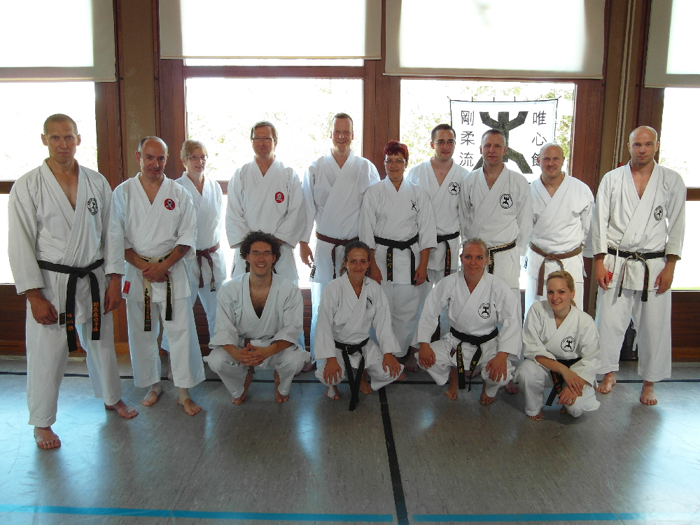 Fast schon wie eine Tradition ist der Kata-Lehrgang in Schozach mit Uwe Portugall. Auch dieses Jahr, zum 4. Mal seit 2008 in Folge, war Uwe Portugall bei Bushido Schozachtal zu Besuch: Das Thema des diesjährigen Kata-Lehrgangs war Suparinpei. Wie immer war der Lehrgang sehr aufschlussreich: Neben dem Ablauf und vieler Details der Kata, gab Uwe auch viel von seinem Wissen zu Geschichte, Herkunft und Bedeutung der Kata den Teilnehmern mit auf den Weg. Auch die Bunkai war sehr detailiert. Vor allem auf realistische Techniken legte Uwe viel Wert, die er auch mit seinem extra mit-angereisten Trainingspartner Stephan demonstrierte. Einige teilnehmenden Karateka waren besonders überrascht, als sie erfuhren, das nur ein kleiner Bruchteil (vielleicht 5-10%) der in der Kata steckenden Techniken auch in der Kataausführung sichtbar sind. Die Aufgabe jedes Karateka ist es, die versteckten Techniken zu finden, die die chinesischen Kata überliefern. Der Lehrgang war wieder einmal sehr aufschlussreich und nicht nur körperlich anstrengend. Gegen Ende zeigte Stephan uns dann noch einige interessante Grundtechniken des Bodenkampfs, die den Lehrgang abrundeten. Mit viel neuem Wissen verließen die Karateka Schozach nach einem schönen Lehrgang.